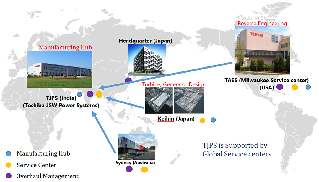 - For non-Indian projects, Toshiba JSW can supply the spares with the support of Toshiba Energy Systems & Solutions Corporation (TESS) and technology transfer.